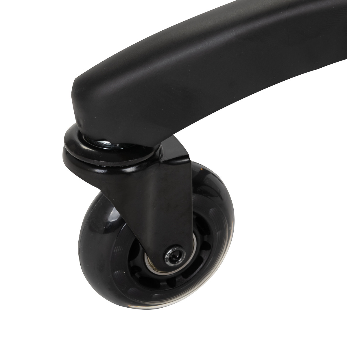 Dieser Hocker ist auf einem soliden 50 cm langen Metallsockel mit 5 Lenkrollen montiert und vereint Sicherheit und Manövrierfähigkeit . Er gleitet mühelos über verschiedene Bodenarten (Fliesen, Parkett, Vinyl), ohne Spuren zu hinterlassen.