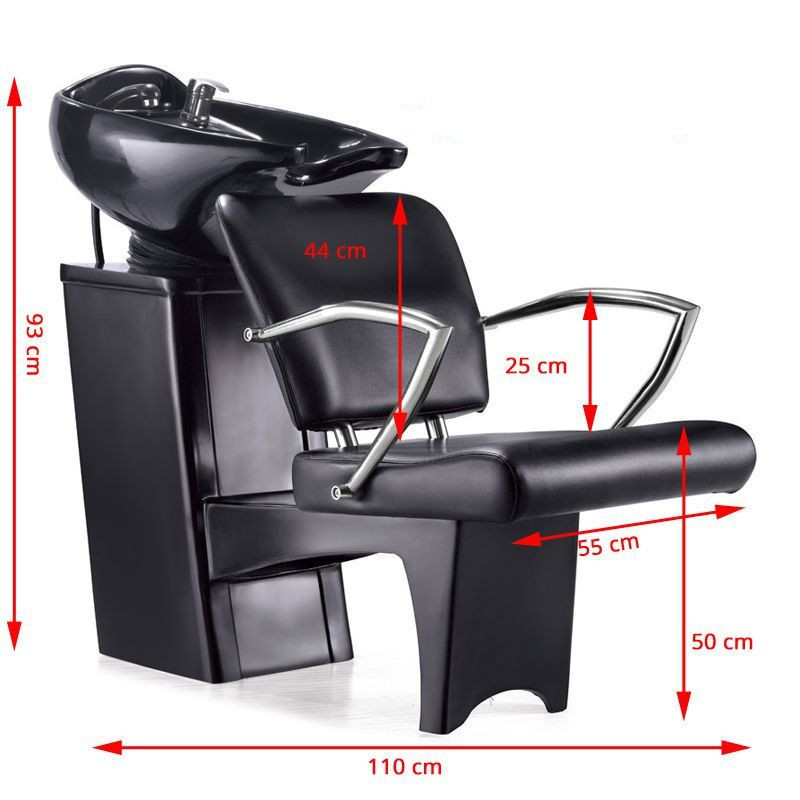 The professional black shampoo unit with a black basin and metal armrests is designed to offer optimal comfort for clients and perfect ergonomics for hairdressing professionals. Its modern design and robust structure make it an essential piece of equipment for hair salons seeking furniture that is both aesthetically pleasing, durable, and functional.