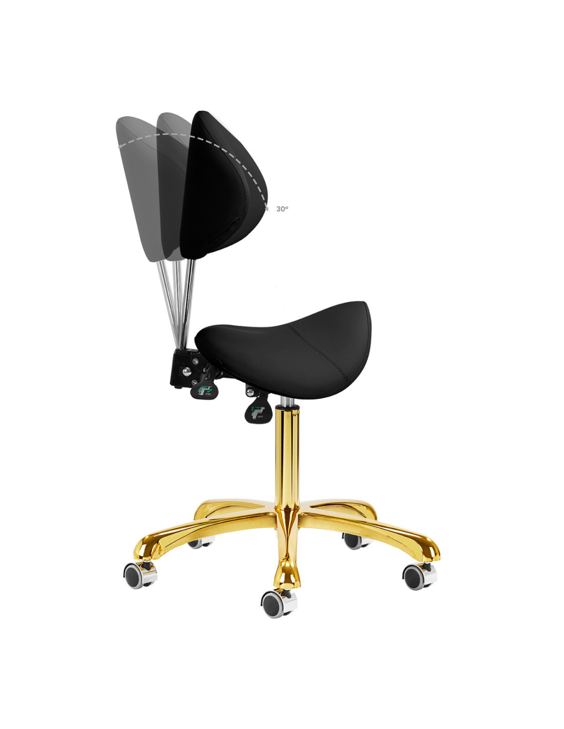 The ability to adjust the seat height between 50 and 64 cm allows the specialist to adopt the appropriate position when performing services. The contoured backrest , which can be extended by 20 cm, provides excellent back support , regardless of the user's height. The full rotation mechanism makes work more efficient and comfortable. The chair also has a lockable cradle function , which allows ergonomic body positioning during work. A well-contoured saddle-shaped seat, filled with non-deformable foam, guarantees users comfort and ergonomic work .