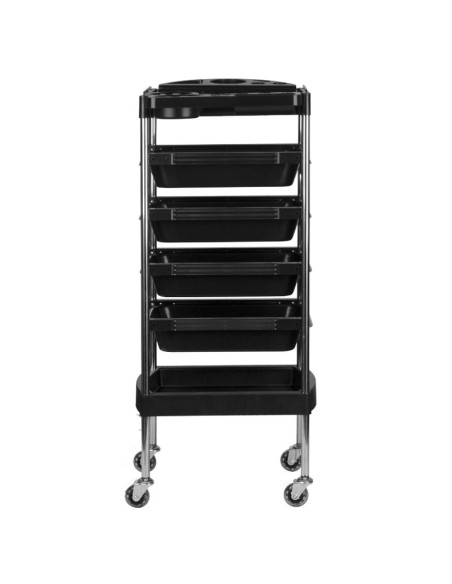 El tocador de Gabbiano es un mueble de alta calidad. Está hecho de plástico ABS duradero con un marco de acero que garantiza una alta estabilidad y durabilidad. Todo está montado sobre ruedas de goma con cojinetes de bolas muy resistentes. ¡El clásico color negro combinará perfectamente con la decoración de tu sala de estar!