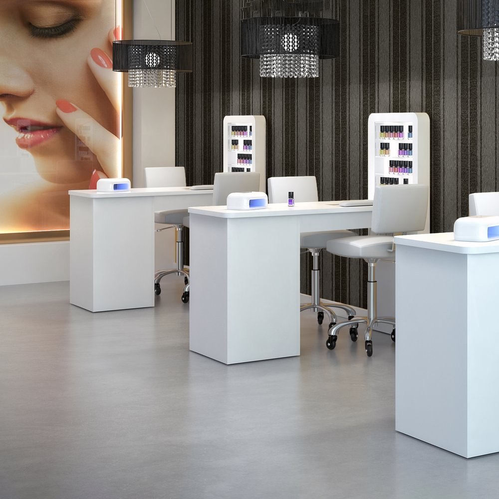 | Manucure & Pédicure | Tables aspirantes, fauteuils spa, ponceuses, lampes UV, chariots et repose-mains |