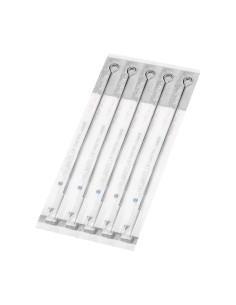 Le type d'aiguille Flat El Cartel est utilisé pour créer des remplissages et des contours. Ils sont parfaits pour créer des tatouages de grande surface. Ces types d’aiguilles sont disposées à plat sur une seule rangée. Les aiguilles El Cartel sont fabriquées à partir de matériaux de première qualité. Ils sont sans danger pour le corps et ne provoquent aucune irritation. El Cartel 0,35 7 Les aiguilles de tatouage plates sont dures et pointues. Ils vous permettent de travailler avec précision. Chaque aiguille présentée comporte 7 pointes étroitement soudées ensemble.