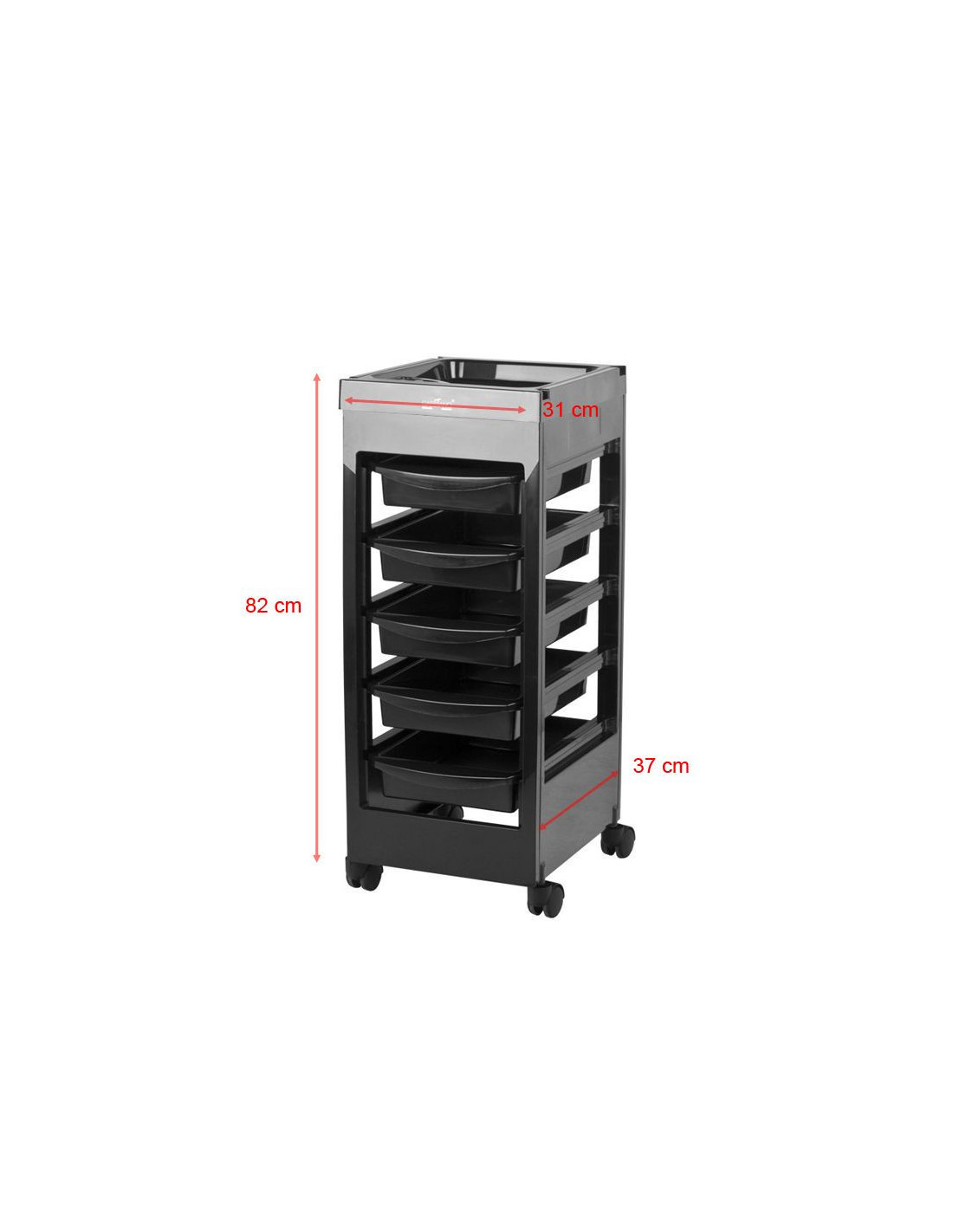 Chariot noir pratique à assembler, équipé de roulettes robustes et de 5 cuvettes pour un rangement organisé. Stable et durable, il facilite votre quotidien en salon.