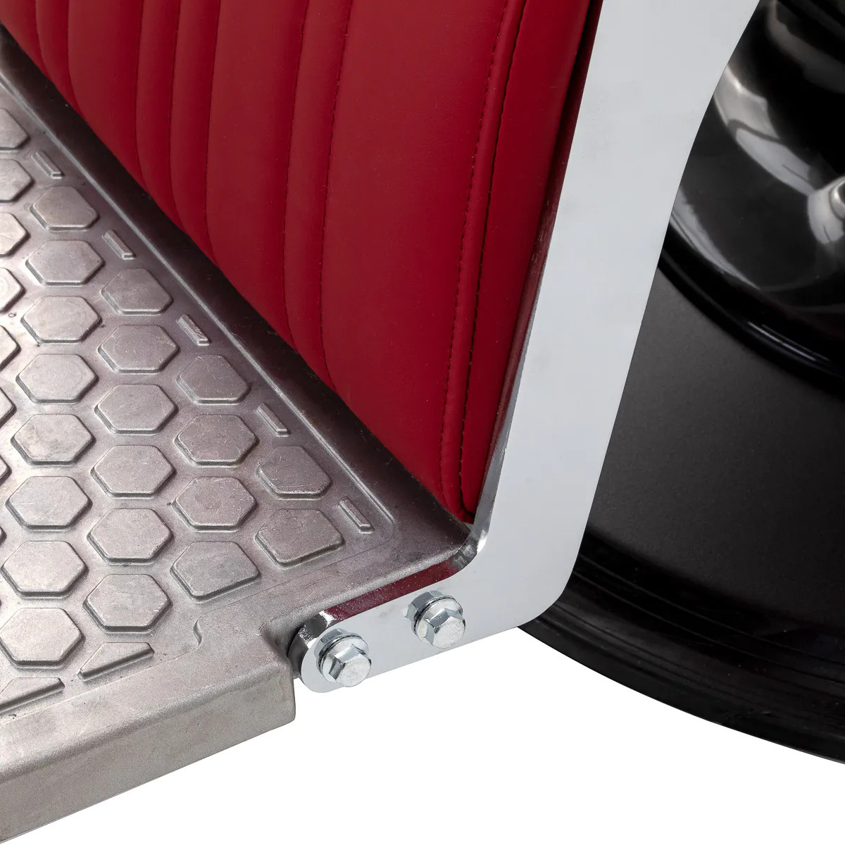 Grâce à son mécanisme hydraulique performant, le fauteuil ALESSANDRO permet un réglage fluide et stable de la hauteur d’assise, même lorsque le client est installé. Cette précision est essentielle pour maintenir une posture ergonomique et travailler avec efficacité lors des coupes, rasages ou soins techniques.
