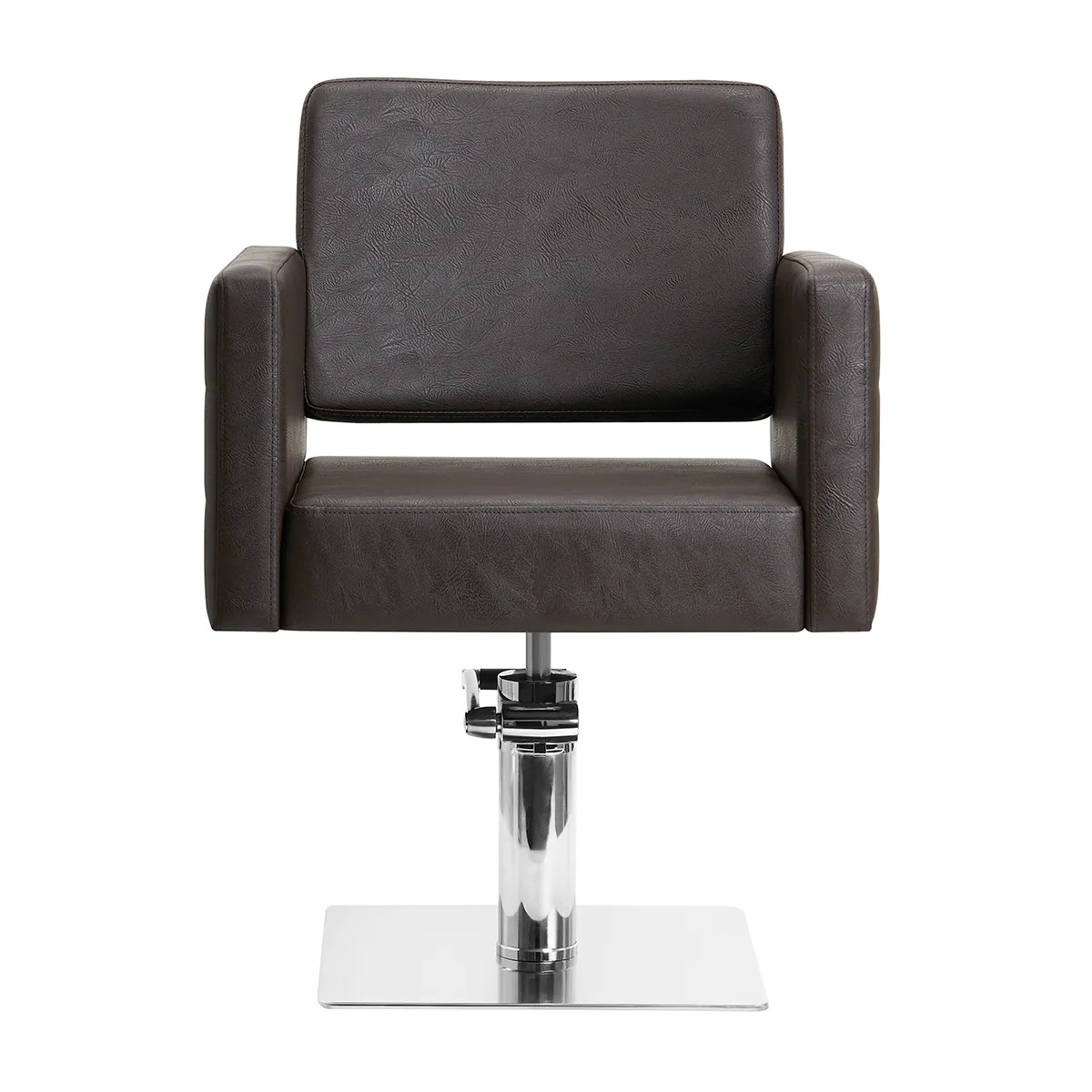 Chaise de coiffure moderne, confortable et réglable, conçue pour les salons contemporains. En simili cuir marron de haute qualité, stable et durable.