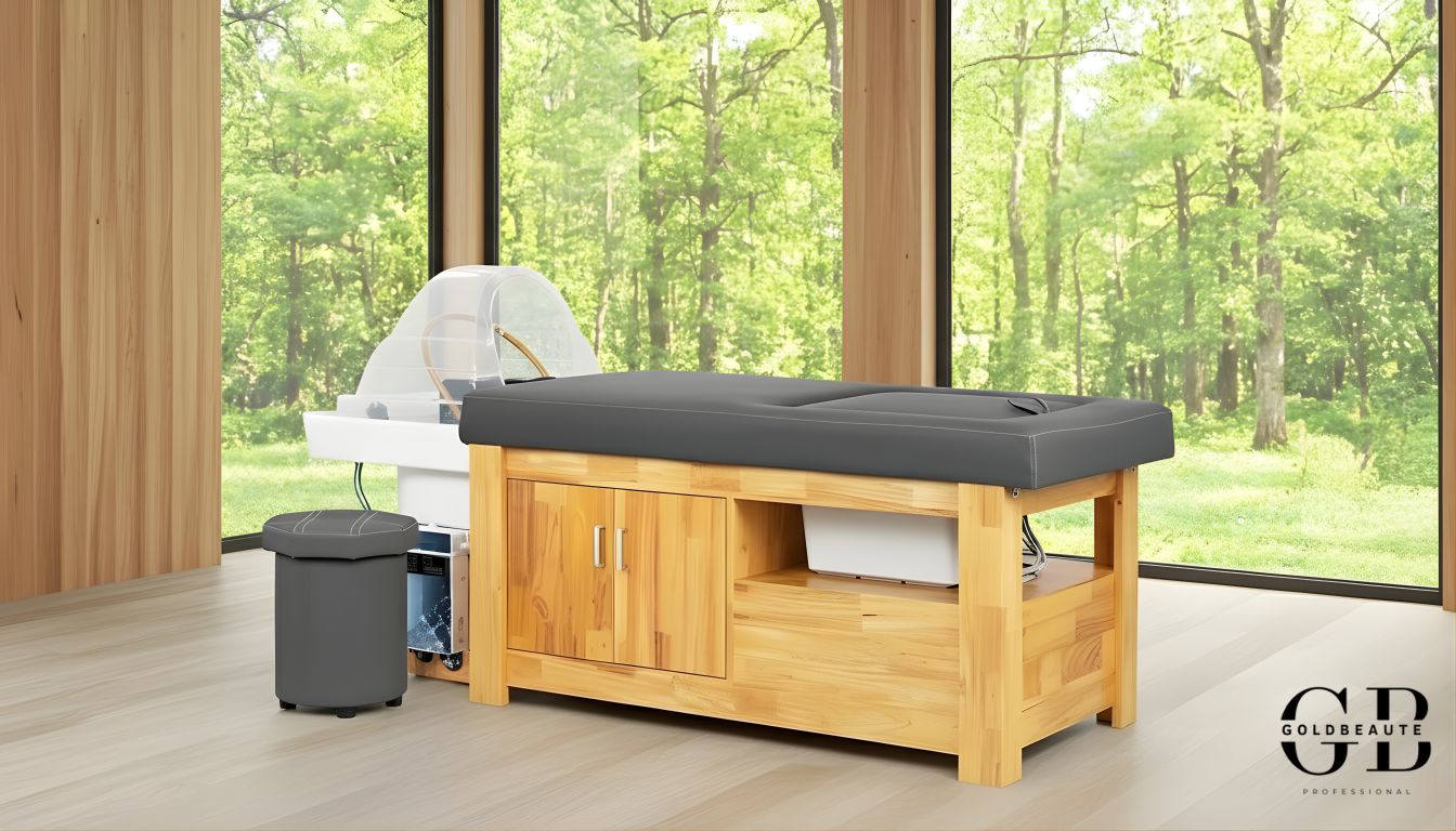 La Table Head Spa 3-en-1 – Édition ZenFusion Goldbeaute puise son inspiration dans l’art du minimalisme japonais. Ses lignes épurées, sa structure en bois massif et ses finitions soignées rappellent l’équilibre entre nature et modernité. Chaque élément a été étudié pour renforcer la sérénité visuelle de votre espace.
