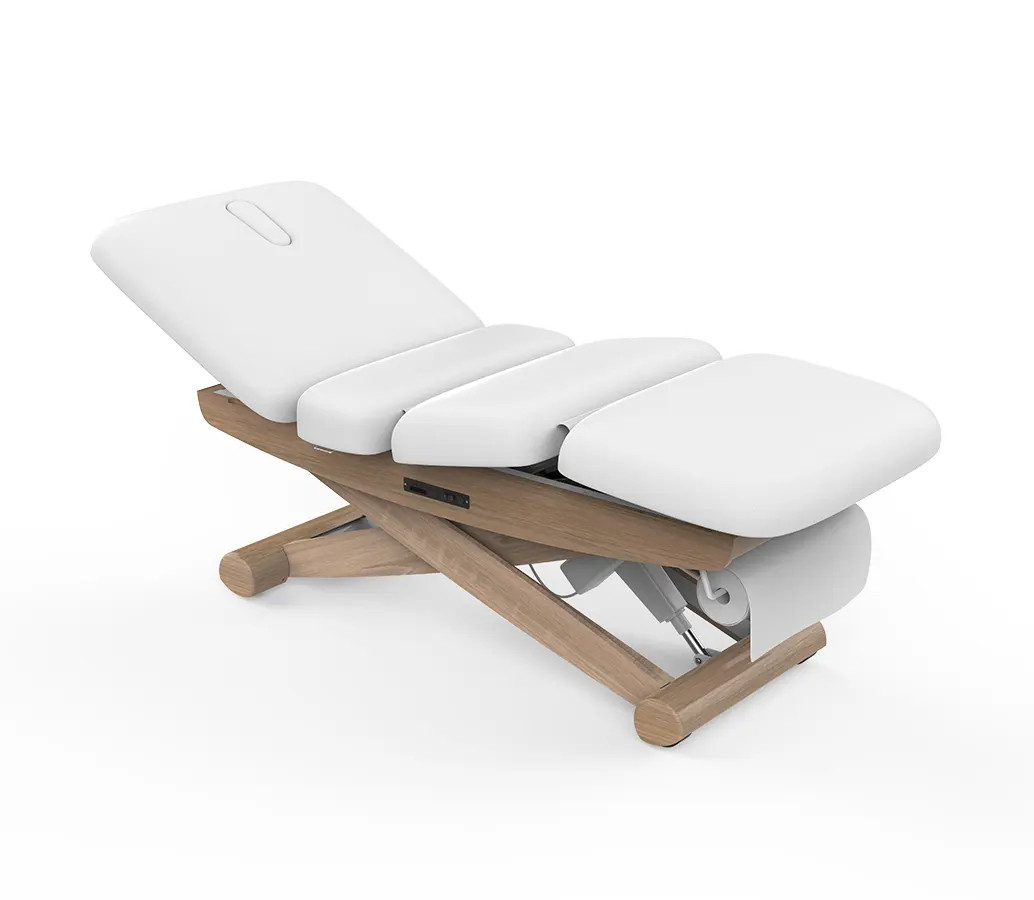 La table électrique Livia redéfinit l’expérience cabine avec une technologie de réglage fluide, un design raffiné et un confort d’excellence. Dotée de 3 moteurs puissants, elle assure des transitions harmonieuses pour tous vos soins esthétiques, relaxants ou thérapeutiques.