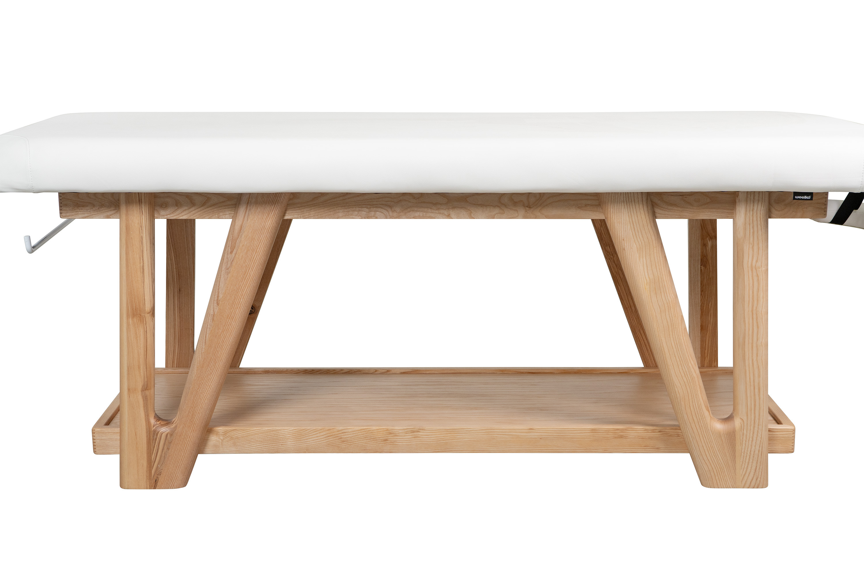 La table ROOTS dispose d’une étagère inférieure en bois massif, parfaitement intégrée à la structure. Cet espace de rangement permet de garder à portée de main serviettes, huiles, accessoires ou matériel de soin, tout en maintenant une cabine ordonnée.