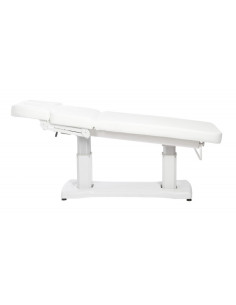 Une structure stable posée sur une base à cinq branches, avec des roues en caoutchouc, disponible en blanc.