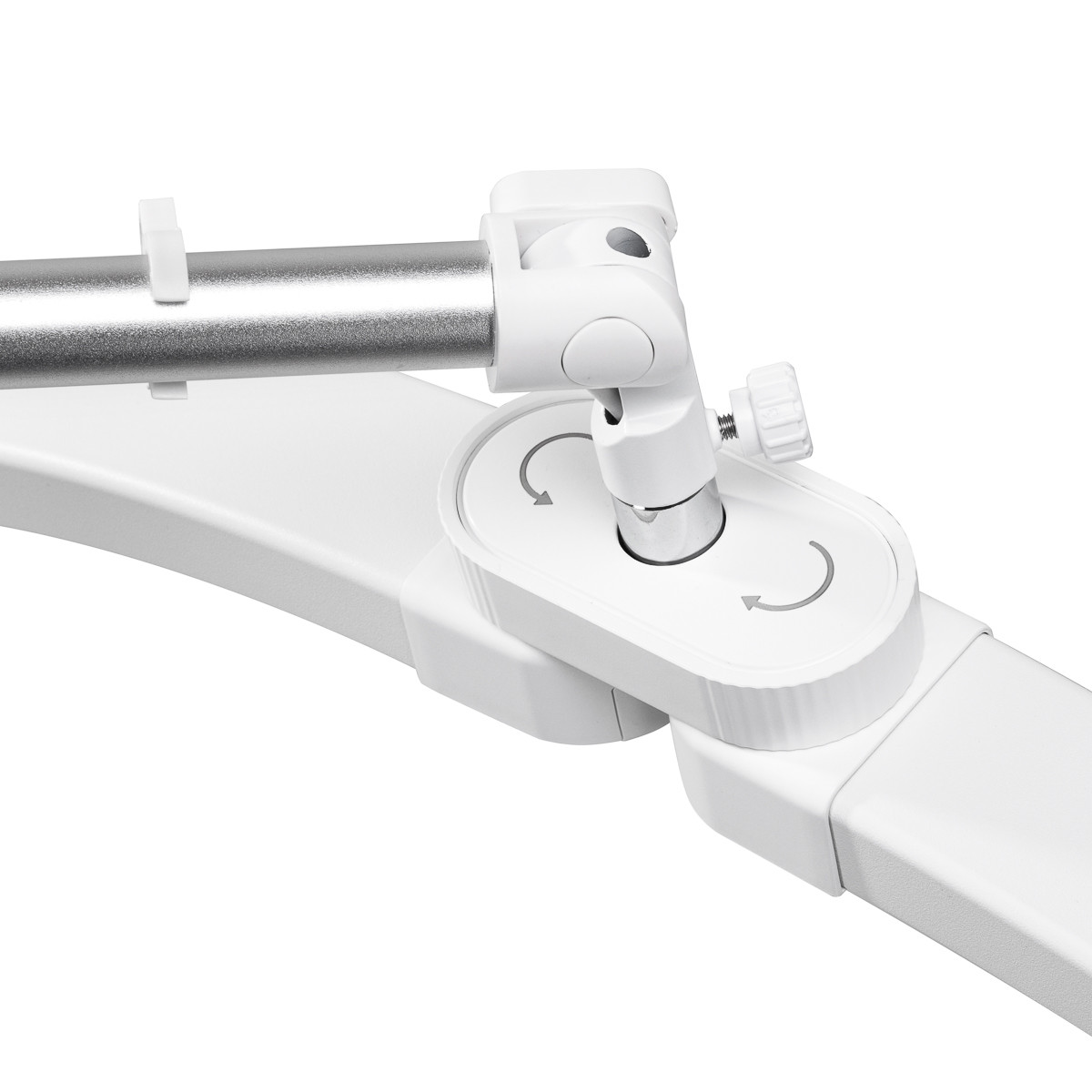 Il supporto può essere facilmente regolato da 155 a 195 cm utilizzando una vite di bloccaggio situata sul braccio. Ciò consente una regolazione precisa della posizione della testa per adattarsi alle esigenze individuali dell'utente e a vari tipi di poltrone, lettini e lettini per trattamenti estetici, garantendo un'illuminazione ottimale dell'area di lavoro . Il colore e l'intensità della luce possono essere regolati tramite due telecomandi : uno situato proprio accanto alla lampada, sempre a portata di mano, e l'altro consente il controllo remoto delle impostazioni. Inoltre, il magnete integrato consente un comodo fissaggio in qualsiasi posizione desiderata.