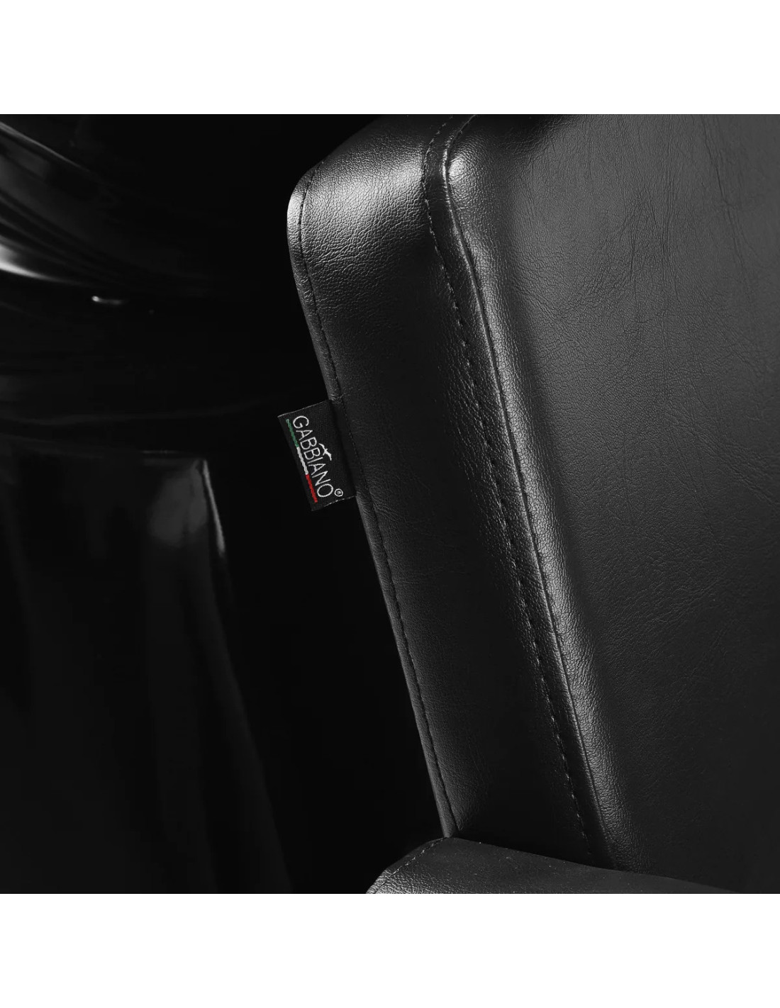Il rivestimento in similpelle completamente nera conferisce un aspetto uniforme e di alta qualità. Offre un supporto eccellente grazie all'ampio schienale, ai braccioli avvolgenti e alla seduta profonda. Perfetto per un'esperienza cliente confortevole e professionale.