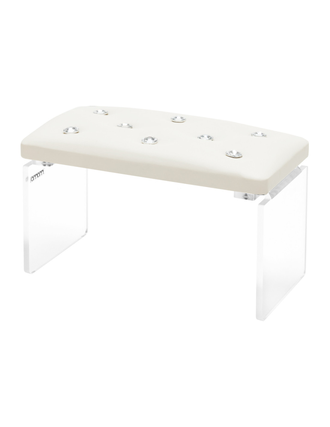 L'altezza adeguata del supporto garantisce una posizione comoda sia per il cliente che per il parrucchiere. La postura corretta del parrucchiere riduce al minimo il carico sulla colonna vertebrale , riducendo efficacemente il mal di schiena e offrendo al cliente maggiore comfort e relax . Gli elementi in silicone sulle gambe proteggono il vassoio dai graffi e ne impediscono lo scivolamento sul tavolo, garantendone così la stabilità. La struttura in plastica e la pelle sintetica facile da pulire garantiscono una lunga durata del prodotto, mentre i cristalli decorativi gli conferiscono un aspetto unico .