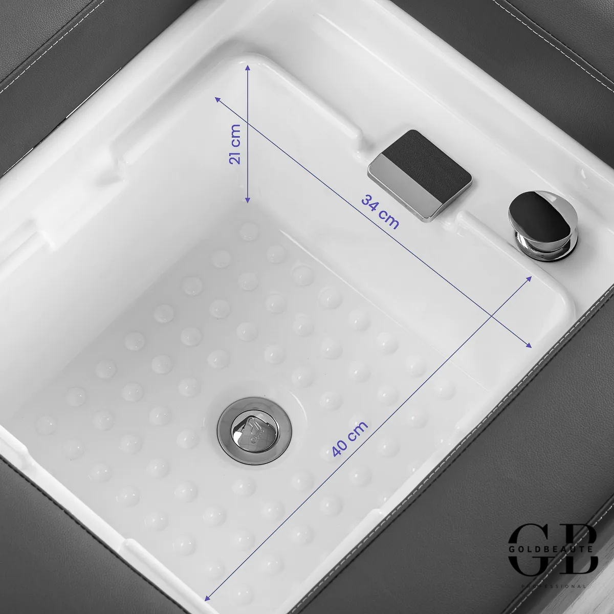 - Ingebouwde pedicure spa – ontspannend voetbad ingebouwd in de tafel, discreet en hygiënisch.