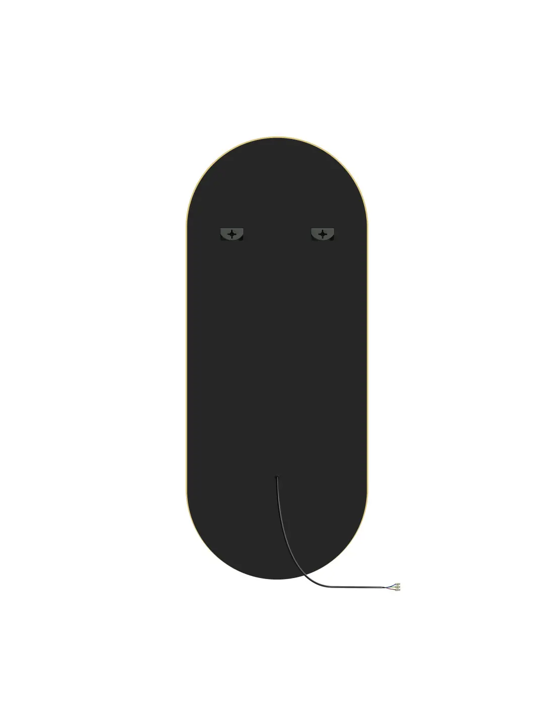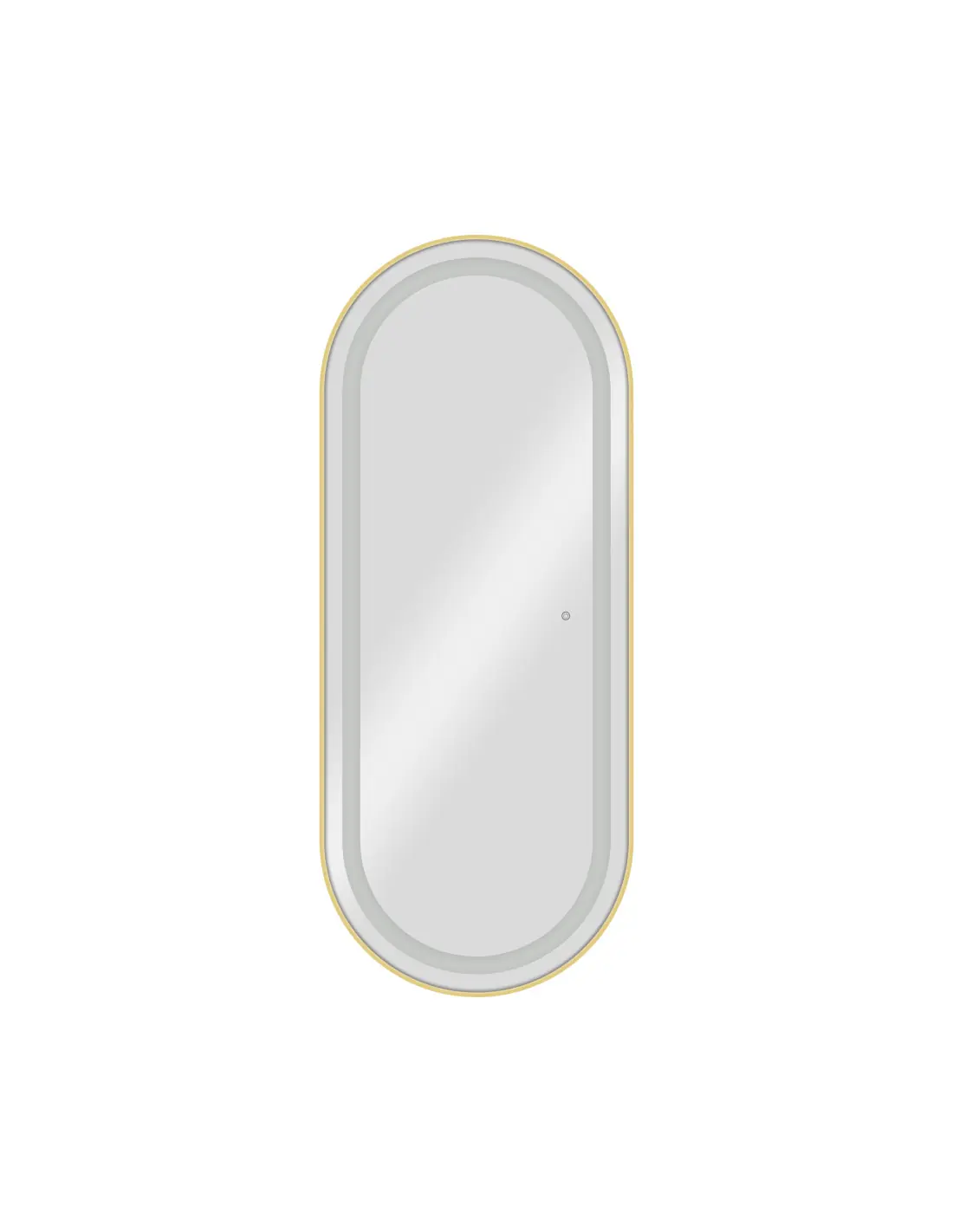 Lustro ścienne OVALIA Gold LED zachwyca złotym, owalnym kształtem i regulowanym oświetleniem LED (3000 K, 4000 K, 6000 K). Dzięki wymiarom 170 x 70 cm i solidnemu uchwytowi ściennemu łączy w sobie luksus, komfort wizualny i trwałość, idealną dla salonów klasy premium.