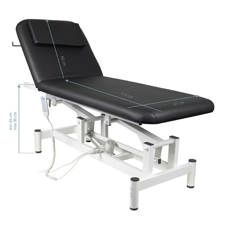 Le divan est notamment destiné aux soins de physiothérapie et aux instituts de beauté. Équipé d'un moteur, la hauteur est réglée électriquement, tandis que l'inclinaison du dossier est réglée manuellement. L'appui-tête est un oreiller qui couvre l'ouverture du visage. Il a une structure exceptionnellement stable et un plan de travail confortable.